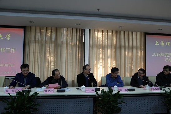 2019年1月18日,學(xué)校2018年度技術(shù)轉(zhuǎn)移工作總結(jié)會在格致堂108召開。會議邀請到上海教委科發(fā)中心主任陸震、上海張江高校協(xié)同創(chuàng)新研究院院長倪爭技出席,學(xué)校副校長劉平、技術(shù)轉(zhuǎn)移中心主任張大偉、副主任管驍、上海理工技術(shù)轉(zhuǎn)移有限公司總經(jīng)理童正明及各技術(shù)轉(zhuǎn)移工作站站長近30人參加會議。會議由張大偉主持。
