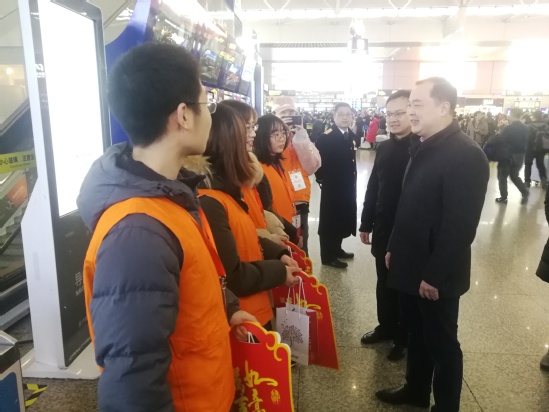 1月28日上午,團(tuán)市委副書記鄔斌以及上海理工大學(xué)校團(tuán)委書記劉威老師先后前往上海虹橋站進(jìn)行慰問,他們不僅對志愿者們噓寒問暖,更帶去了溫馨的慰問品,志愿者們紛紛表示,領(lǐng)導(dǎo)們的關(guān)切給了自己莫大的溫暖和動力。