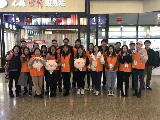 臨近春節(jié),忙碌了一年的人們紛紛回老家與親人團(tuán)聚,虹橋火車站也迎來了一年一度的春運(yùn)高峰。從2011年起,我校每年都會為上海虹橋站輸送一批大學(xué)生志愿者,助力春運(yùn)。今年,我校一共派出85名志愿者,他們中既有上海的同學(xué),也有很多留校過年的外地同學(xué)。從1月22日至2月3日,幾乎每天都能看到近30名上理志愿者的身影,他們身穿橙色馬甲,服務(wù)著往來的旅客,被大家親切地稱為“小甜橙”?!靶√鸪取泵β涤譄崆榈纳碛霸谶@個(gè)寒冬溫暖了無數(shù)旅客回家的路。
