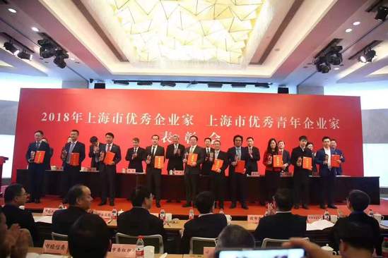 魏杰(左二)榮膺“2018年上海市優(yōu)秀青年企業(yè)家”稱號