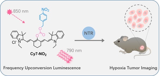 癌癥是目前影響人類壽命的主要因素,對癌癥的治療,除了手術(shù)以外,通常采用放療或化療的治療形式。但是,在治療的過程中,缺血缺氧腫瘤,即所謂的乏氧腫瘤對放化療敏感性較低,從而造成放化治療療效降低甚至無效。因此,在放化療之前,對腫瘤缺氧程度的評判顯得尤為重要,其中檢測腫瘤缺氧標志物是一種簡單有效的評判腫瘤缺氧程度的方式。在眾多乏氧腫瘤標志物中,硝基還原酶在大部分缺氧腫瘤中能大大表達??娊淌趫F隊通過采用近紅外熒光染料為發(fā)光報告中心,加以硝基還原酶檢測基團修飾,得到了近紅外光學(xué)響應(yīng)的檢測探針,通過獨特的頻率上轉(zhuǎn)換檢測方式,得到了極低的檢測線和較高的信噪比,實現(xiàn)了對乏氧腫瘤在體檢測新的突破。該種檢測方法試劑制備簡單,對檢測儀器要求較低,可快速對乏氧腫瘤進行判別。該成果有望進一步應(yīng)用于生物醫(yī)學(xué)檢測領(lǐng)域。