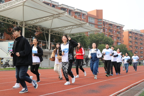 在冬末春初的暖陽(yáng)照耀下,操場(chǎng)上奔走的身影迎著陽(yáng)光,透出了絲絲暖意。全體參跑者分為兩組,每組都由師生共同組成,大家熱情高漲,認(rèn)真地和成員討論著自己的路線。開跑后,師生互相合作共同奔跑,并大喊口號(hào)、彼此鼓勵(lì)、鼓舞士氣,處處彰顯著版藝人的活力和風(fēng)采??v是涼風(fēng)也吹不滅他們身上的熱情,場(chǎng)面其樂(lè)融融,氣氛十分融洽,歡聲笑語(yǔ)蕩漾在操場(chǎng)上空。