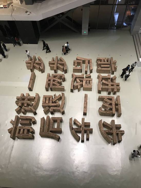 參觀過程中,一樓大廳中阿根廷藝術(shù)家恩里克·耶澤克《圍地》引起了師生黨員的強烈興趣。作品由4000多塊廢紙板組成,在一樓大廳近距離觀看時,很難看出作品想表達的含義,然而當(dāng)你走上二樓從高處俯視時,“前進兩步,后退一步;前進一步,后退兩步”的文字矩陣卻躍然眼前。強烈的視覺沖擊,引人反思啟蒙敘事對于“發(fā)展進步”的過分迷戀,直面歷史發(fā)展本身的矛盾性與辯證性。一樓大廳中另一件作品,來自費爾南多·桑切斯·卡斯蒂略《擺蕩》,則用搖擺不定的秋千,傳達出當(dāng)代無處不在的矛盾與人們無處安放的情感。西班牙藝術(shù)家克里斯蒂娜·盧卡斯《順時針》,是一個由360個時鐘構(gòu)建的機械裝置空間,藝術(shù)家傳達出對于工業(yè)社會與信息時代中自然時間被人為切割的憂慮之情。