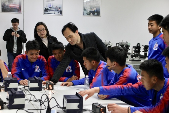 為了進一步提升上海綠地申花俱樂部青少年球員的文化素質(zhì),積極開拓知識面、有效地輔助促進競技訓(xùn)練,并進一步加強與先進單位的橫向聯(lián)合。3月22日上午,上海綠地申花足球俱樂部辦公室主任周欣、03梯隊助理教練安德烈·巴拉伊奇(Andrija Balajic)和守門員教練達比松·弗朗哥(Davison Franco)帶領(lǐng)俱樂部03梯隊全體成員赴我校光電信息與計算機工程學(xué)院進行參觀學(xué)習(xí)。光電學(xué)院院長莊松林院士、校工會副主席倪偉、體育教學(xué)部副主任袁勇等相關(guān)領(lǐng)導(dǎo)教師出席活動。