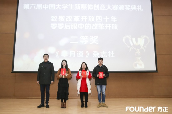 中國大學生新媒體創(chuàng)意大賽由中國編輯學會、中國高等教育學會主辦,中國音像與數(shù)字出版協(xié)會、半月談雜志社新媒體中心、中版集團數(shù)字傳媒有限公司、中原大地傳媒股份有限公司、北京北大方正電子有限公司協(xié)辦,至今已成功舉辦六屆。本屆大賽自啟動以來,受到全國各大高校師生的廣泛關(guān)注,共收到來自中國人民大學、中國傳媒大學等全國上百所高校千余名同學的600多部作品,歷時10個月,經(jīng)過多輪專家評審,57部優(yōu)秀作品脫穎而出。