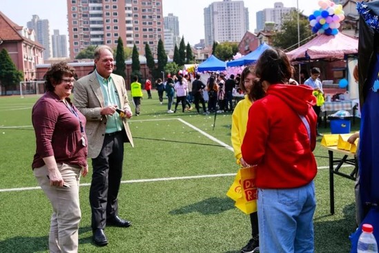 學(xué)院執(zhí)行院長(zhǎng)Laura Bishop(左)和會(huì)展經(jīng)濟(jì)與管理專業(yè)項(xiàng)目負(fù)責(zé)人、高級(jí)講師Tony Ryan(右)與同學(xué)們交流