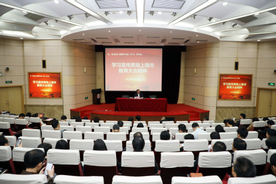 3月22日,上海市教育大會舉行,中共中央政治局委員、上海市委書記李強(qiáng),教育部黨組書記、部長陳寶生出席會議并講話。為深入學(xué)習(xí)貫徹上海市教育大會精神,3月27日下午,學(xué)校在綜合樓報告廳舉行校、院(機(jī)關(guān))兩級中心組(擴(kuò)大)學(xué)習(xí)會,校黨委書記吳松傳達(dá)大會精神,兩級中心組成員、全體正教授參加會議。