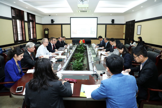 近日,德國漢堡應(yīng)用技術(shù)大學(xué)特爾舍爾(Teuscher)校長代表團(tuán)訪問我校。4月2日上午,校長丁曉東會(huì)見代表團(tuán)一行,副校長蔡永蓮、國際交流處、中德學(xué)院黨政負(fù)責(zé)人參加會(huì)談。
