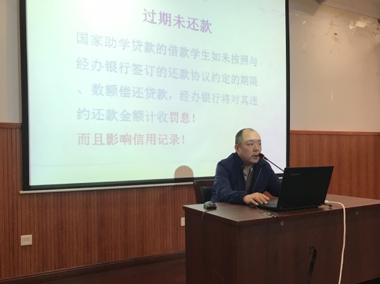 會(huì)議伊始,中國(guó)銀行楊浦高校貸款負(fù)責(zé)人劉俊就校園地貸款還款事宜作了介紹,重點(diǎn)講解了還款政策和還款協(xié)議的書(shū)寫(xiě)。他指出,誠(chéng)信是為人的重要品質(zhì),如期履約、按時(shí)還貸是每個(gè)接受助學(xué)貸款資助同學(xué)的義務(wù)。大學(xué)生要謹(jǐn)記國(guó)家的殷切厚望,維護(hù)好學(xué)校形象,不斷提升重信守諾的意識(shí)。在還款注意點(diǎn)上,他強(qiáng)調(diào),一定要慎之又慎,個(gè)人信息一旦變更,諸如手機(jī)號(hào)、地址之類(lèi),應(yīng)及時(shí)攜帶身份證至任意一家中國(guó)銀行網(wǎng)點(diǎn)更改個(gè)人信息,以免造成個(gè)人信用問(wèn)題。同時(shí)強(qiáng)調(diào),尤其在還款階段要更加注重,以便一旦發(fā)生逾期能夠在第一時(shí)間收到銀行通知。接著,劉俊老師又介紹了還款計(jì)劃和貼息申請(qǐng),同時(shí)現(xiàn)場(chǎng)指導(dǎo)學(xué)生填寫(xiě)還款協(xié)議等材料,并對(duì)有疑問(wèn)的同學(xué)一一解答,讓在場(chǎng)學(xué)生對(duì)還款有了清晰的認(rèn)識(shí)。