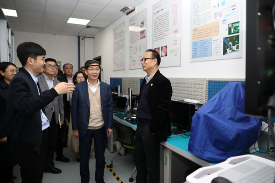 陳國(guó)強(qiáng)一行在莊松林院士的陪同下,參觀了學(xué)校近年來(lái)聚焦醫(yī)學(xué)實(shí)際需求,交叉融合光學(xué)、機(jī)械、動(dòng)力、材料、控制、系統(tǒng)、生物醫(yī)學(xué)工程、人工智能等多學(xué)科力量,成功研發(fā)的一系列可直接應(yīng)用于臨床物理治療的產(chǎn)品和技術(shù)。
