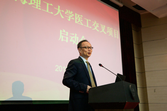 2019年5月9日,上海理工大學(xué)醫(yī)工交叉項(xiàng)目啟動(dòng)大會(huì)在綜合樓報(bào)告廳舉行。校長(zhǎng)丁曉東、副校長(zhǎng)劉平、新華醫(yī)院副院長(zhǎng)鄭忠民、長(zhǎng)征醫(yī)院骨科醫(yī)院院長(zhǎng)肖建如、長(zhǎng)海醫(yī)院轉(zhuǎn)換醫(yī)學(xué)辦公室主任薛芊,學(xué)校相關(guān)學(xué)院、職能部門負(fù)責(zé)人,以及首批參與醫(yī)工交叉項(xiàng)目的教師代表和醫(yī)生代表出席會(huì)議。會(huì)議由劉平主持。