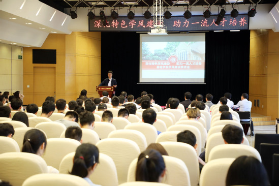 校長(zhǎng)丁曉東在講話中強(qiáng)調(diào),學(xué)風(fēng)建設(shè)要緊抓“宿舍”和“一年級(jí)”兩條主線,一年級(jí)抓學(xué)風(fēng)建設(shè)是為了讓學(xué)生轉(zhuǎn)變中學(xué)重復(fù)性學(xué)習(xí)的方式方法,提升快速接受新知識(shí)的能力,營(yíng)造“你追我趕、奮勇爭(zhēng)先”的學(xué)習(xí)氛圍,培養(yǎng)良好的學(xué)習(xí)和生活習(xí)慣,進(jìn)而樹立規(guī)則意識(shí)。他指出,目前學(xué)校教學(xué)方式改革正在同步進(jìn)行,將助力一流人才培養(yǎng);智能化教學(xué)樓也在著力建設(shè)中,為學(xué)生創(chuàng)設(shè)“學(xué)不思?xì)w”的教室環(huán)境;學(xué)校在未來將實(shí)施“高標(biāo)準(zhǔn)、嚴(yán)要求、厚基礎(chǔ)、強(qiáng)實(shí)踐”的項(xiàng)目課程體系,讓學(xué)生參與到國(guó)家級(jí)項(xiàng)目中去,逐步實(shí)施“榮譽(yù)學(xué)位”體系,促進(jìn)學(xué)生主動(dòng)爭(zhēng)取身邊資源,成就學(xué)子夢(mèng)想,提高育人質(zhì)量,使學(xué)校辦學(xué)水平獲得長(zhǎng)足發(fā)展,為地方高水平大學(xué)和特色顯著的一流理工科大學(xué)建設(shè)奠定堅(jiān)實(shí)基礎(chǔ)。