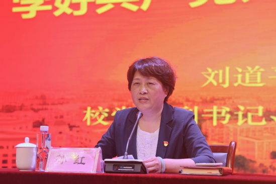 5月17日下午,校第十一期發(fā)展對象培訓班第四講理論專題輔導(dǎo)報告在大禮堂舉行。校黨委副書記、紀委書記劉道平出席會議,并作《重溫經(jīng)典,學好共產(chǎn)黨人的必修課》黨課專題輔導(dǎo)報告。286名學員以及各二級學院黨建輔導(dǎo)員、組織員聆聽了專題黨課。會議由校黨委常委、組織部部長孫紅主持。