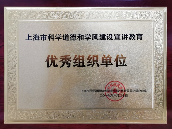 為貫徹落實(shí)《關(guān)于進(jìn)一步加強(qiáng)科研誠信建設(shè)的若干意見》和《關(guān)于進(jìn)一步弘揚(yáng)科學(xué)家精神加強(qiáng)作風(fēng)和學(xué)風(fēng)建設(shè)的意見》,堅(jiān)持立德樹人,營造優(yōu)良學(xué)風(fēng)環(huán)境,上海市科協(xié)和市教委于6月20日下午在上??茖W(xué)會(huì)堂國際會(huì)議室舉辦弘揚(yáng)愛國奮斗精神 爭(zhēng)做科技創(chuàng)新先鋒——2019年上海市科學(xué)道德和學(xué)風(fēng)建設(shè)宣講教育報(bào)告會(huì)。會(huì)上,我校榮獲“上海市科學(xué)道德和學(xué)風(fēng)建設(shè)宣講教育優(yōu)秀組織單位”。