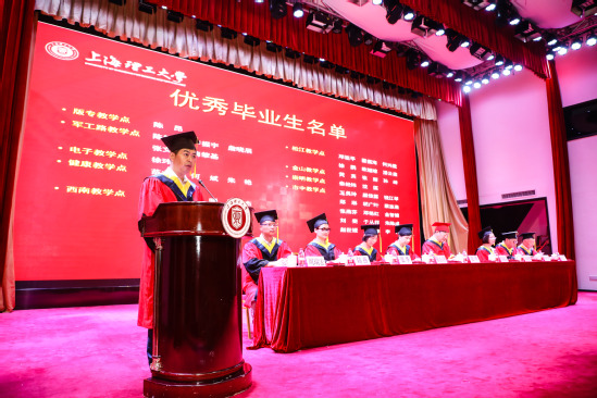 會(huì)議最后,滿載上理人回憶的校歌響起,全體與會(huì)人員深情跟唱,畢業(yè)典禮就此落下帷幕。