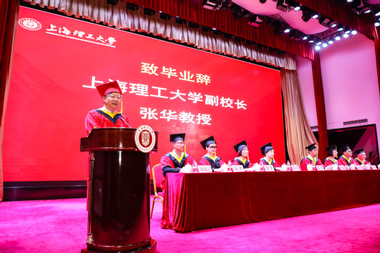 副校長(zhǎng)張華教授代表學(xué)校向畢業(yè)生們表示熱烈的祝賀。他表示,在過去的三年中,成教學(xué)生勤勤懇懇,以頑強(qiáng)的信念和堅(jiān)韌的毅力在學(xué)習(xí)的道路上奮力前行,以實(shí)際行動(dòng)詮釋了“人生無捷徑,堅(jiān)守成大器”的樸素道理。他指出,今年正值新中國(guó)成立70周年,上海理工大學(xué)也進(jìn)入了高水平大學(xué)建設(shè)的關(guān)鍵時(shí)期,學(xué)校奮力勇爭(zhēng),其中也有繼續(xù)教育學(xué)院學(xué)子們的辛勞。他寄語學(xué)子們,要秉承“信義勤愛、思學(xué)志遠(yuǎn)”的校訓(xùn),勇做追夢(mèng)人,甘當(dāng)奮斗者,把個(gè)人夢(mèng)想融入到中華民族偉大復(fù)興的中國(guó)夢(mèng)之中,立志為中國(guó)特色社會(huì)主義事業(yè)奮斗終身。