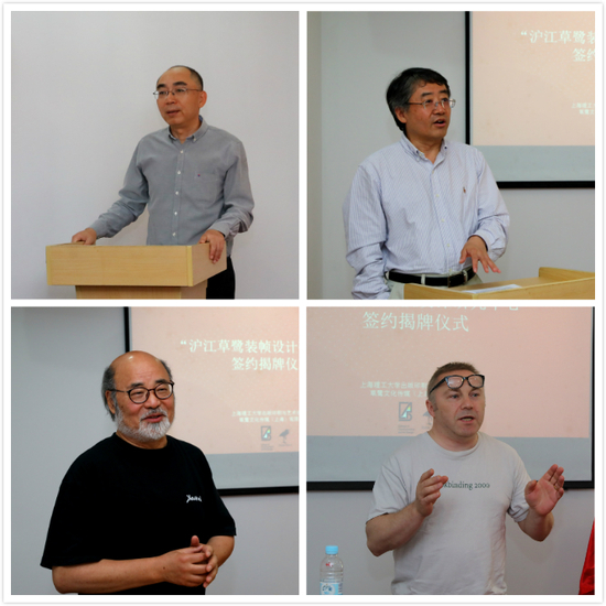 為進一步強化版藝學院裝幀設計研究與行業(yè)接軌,2019年6月28日上午,由版藝學院與草鷺文化傳媒(上海)有限責任公司聯合打造的“滬江草鷺裝幀設計研究中心”成立儀式在德國文化中心舉行。