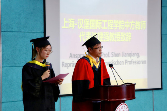7月3日下午,2019屆上海-漢堡國際工程學院畢業(yè)典禮暨雙學位授予儀式在圖文信息中心舉行。上海理工大學副校長蔡永蓮教授、上海-漢堡國際工程學院常務副院長沈建琪教授、學院書記楊承三教授、漢堡應用技術大學項目負責人Michael R?ther教授以及中德雙方教師代表出席本次典禮。2019屆全體畢業(yè)生身著學士服,與師友、家人共同見證了人生中最重要的時刻。