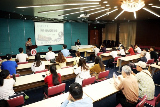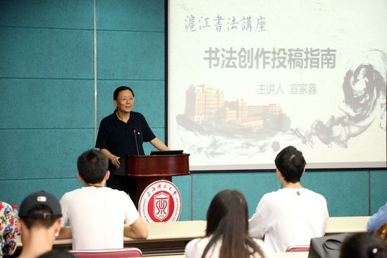 聘任儀式后,宣家鑫為師生做了《書法創(chuàng)作與投稿指南》的專題講座,講座由陳紅主持。參加活動的有滬江書法社成員、藝術(shù)專業(yè)本科生、書法通識課學(xué)生、教職工書法愛好者等。