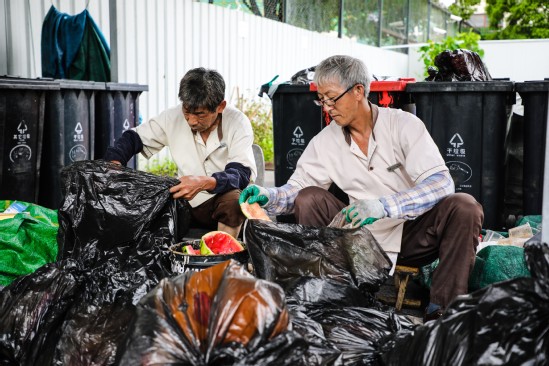 “滬上垃圾四只桶,紅藍(lán)黑棕各不同,害回濕干分開放,人人參與有擔(dān)當(dāng)?!鼻宄?點(diǎn)剛過,酷夏的太陽已很是毒辣。比太陽更“辣”的,大概就是垃圾桶了——扔垃圾的人忍著異味,扔下垃圾后匆匆離去。負(fù)責(zé)垃圾分類的段年生師傅每天都會與垃圾“零距離”接觸 ,忍著惡臭進(jìn)行垃圾二次分類?!斑@么熱的天,倒胃口也是難免的,希望大家扔垃圾時做好垃圾分類,這樣我們的工作會輕松一些,校園也會更美麗!”