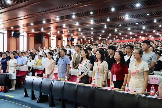 8月24日下午3點,上海理工大學外語學院2019級本科新生開學典禮在圖文信息中心報告廳舉行。外語學院黨委書記程旺、院長劉芹、副院長韓戈玲、副院長陳琦、黨委副書記金小東,各系主任、2019級新生班主任、輔導員以及2019級的新生和新生家長出席。典禮由黨委副書記金小東主持。