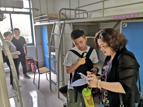 學(xué)院黨委書記、新生班主任陳海瑾下寢室與新生交流