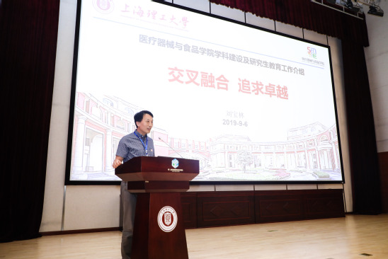 醫(yī)療器械與食品學院院長劉寶林作“交叉融合 追求卓越”的主題發(fā)言。他詳細介紹了學院學科建設(shè)之路和研究生教育工作,展示了學科交叉融合從而實現(xiàn)跨越式發(fā)展的歷史軌跡。最后,他以博士生導師身份倡議全體導師以身作則,在爭一流學科和培養(yǎng)卓越博士研究生的征途中不斷奮勇前進。