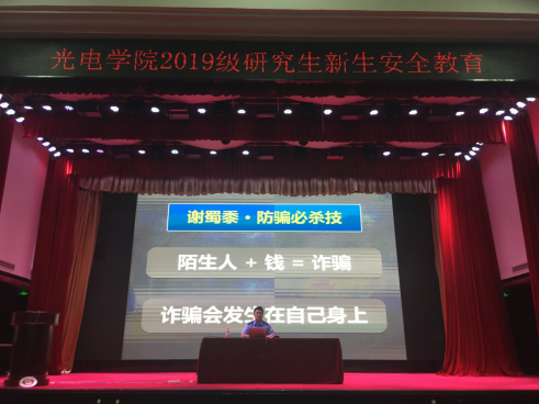 為了增強(qiáng)2019級(jí)研究生新生安全意識(shí),提高自我保護(hù)能力,共建平安校園,9月4日下午,由校保衛(wèi)處、光電信息與計(jì)算機(jī)工程學(xué)院共同舉辦的2019級(jí)研究生新生安全教育講座在大禮堂二樓順利舉行,院黨委副書(shū)記曹英出席,保衛(wèi)處相關(guān)老師、光電學(xué)院輔導(dǎo)員及2019級(jí)全體研究生新生參加,上海市公安局文化保衛(wèi)分局“明星”警官謝曄受邀主講。