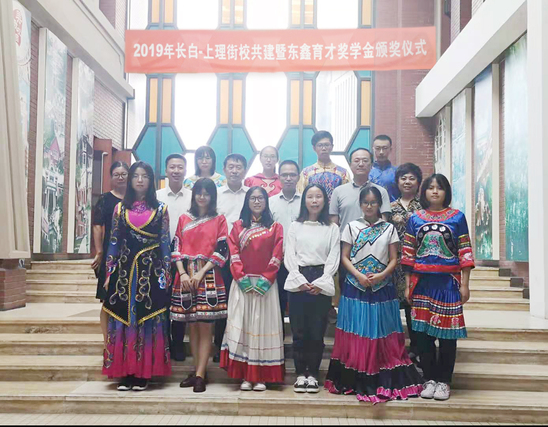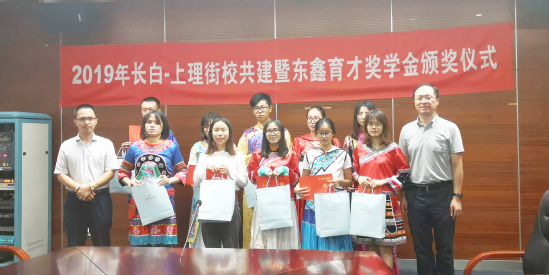 9月23日下午,2019年長白-上理街校共建暨東鑫育才獎學(xué)金頒獎儀式在圖文信息中心第二會議室舉行。上海東鑫電力工程安裝有限公司黨支部書記盧惠民、長白新村街道黨工委副書記吳君隆、我校教育發(fā)展基金會主任孟寶全出席。10位今年東鑫育才獎學(xué)金獲獎學(xué)生著各自民族服裝出席。會議由學(xué)生處副處長、學(xué)生資助管理中心主任謝錫浩主持。