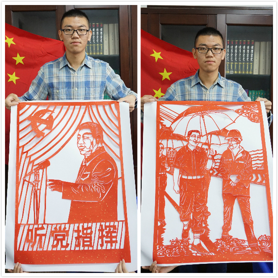 17級傳播學3班周楠嶼出生于非物質(zhì)文化遺產(chǎn)——“盧龍剪紙”世家。今年暑期,他與“盧龍剪紙”第五代傳人的母親黃秀麗一起創(chuàng)作了以習近平總書記的形象為原型的剪紙組圖,展現(xiàn)在習近平總書記領導下的中國共產(chǎn)黨在祖國建設中所作出的巨大貢獻。盧龍剪紙歷史悠久,淵源流長,作為民間文化的重要載體,有著較高的學術價值、藝術價值和使用價值。