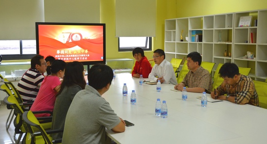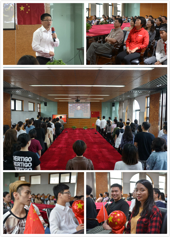慶祝大會、閱兵式和群眾游行后,版藝學院中心組學習會在綜合樓A505舉行,學院黨委書記吳建安表示,共產(chǎn)黨人一棒接一棒地“不忘初心、牢記使命”,才換來偉大祖國獲得萬眾矚目的成就。學院院長蔡錦達表示,閱兵式增加了全國人民的自信心,在新時代的偉大征程中,大家要牢固樹立愛國主義奮斗精神。