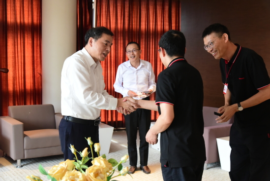 何木云感謝母校的關(guān)心,他表示對(duì)母校的感情很深,目前仍關(guān)注學(xué)校與行業(yè)的發(fā)展動(dòng)態(tài),并欣然隨行一起參觀走訪校友企業(yè)。在交流中,盛春與何木云探討了提升我校本科和研究生生源質(zhì)量、培養(yǎng)高水平大學(xué)生的具體辦法。何木云結(jié)合自身在黨的旗幟下快速成長(zhǎng)的經(jīng)歷,指出年輕人要勤奮努力學(xué)習(xí),勇于承擔(dān)社會(huì)工作,將來一定大有可為。