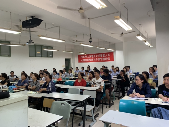 針對(duì)與寢室大學(xué)生關(guān)系密切的宿管人員,學(xué)校邀請(qǐng)了上理工心理咨詢師聯(lián)盟單位成員林紫心理咨詢機(jī)構(gòu)的專業(yè)講師作《2019年學(xué)校宿管人員心理危機(jī)預(yù)防與干預(yù)專題培訓(xùn)》。培訓(xùn)聚焦心理危機(jī)的識(shí)別和預(yù)防,并通過現(xiàn)場(chǎng)演練的方式學(xué)習(xí)QPR技術(shù)。60余名宿管人員參加了此次培訓(xùn)。
