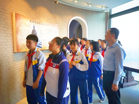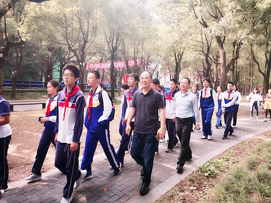 支部成員帶領(lǐng)中學(xué)生游覽校園