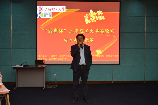 2019年10月23日,由我校資產(chǎn)設(shè)備與實(shí)驗(yàn)管理處、研究生工作部和保衛(wèi)部(處)聯(lián)合主辦,醫(yī)療器械與食品學(xué)院承辦的“磊璨杯”上海理工大學(xué)實(shí)驗(yàn)室安全知識(shí)競(jìng)賽暨“上海市大學(xué)生實(shí)驗(yàn)室安全知識(shí)競(jìng)賽”校級(jí)選拔賽在圖文第一會(huì)議室舉行。研究生工作部部長(zhǎng)魏東、資產(chǎn)設(shè)備與實(shí)驗(yàn)室管理處副處長(zhǎng)繆渝斌、保衛(wèi)部(處)副部(處)長(zhǎng)楊向?qū)?、醫(yī)食學(xué)院黨委副書記鄭靜以及上海磊璨信息科技有限公司總經(jīng)理洪海先生擔(dān)任決賽評(píng)委。