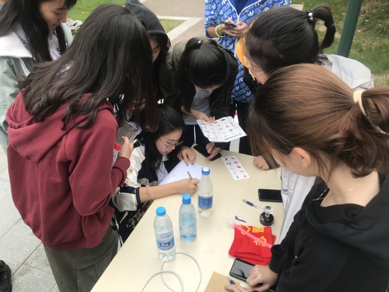 團(tuán)隊(duì)在完成活動(dòng)最后一站時(shí)回到大本營,完成了趣味橫生的垃圾分類小游戲,同學(xué)們帶著打卡成功的地圖凱旋而歸,在百年圖書館門前合影留下值得紀(jì)念的一瞬間。
