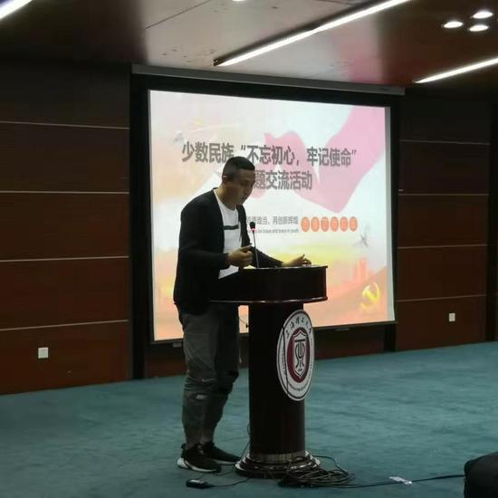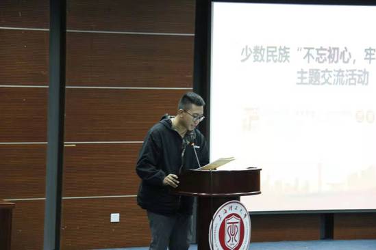 主題交流活動(dòng)的第二部分來(lái)自藏族、哈薩克族、維吾爾族、布依族的4名學(xué)生代表相繼上臺(tái)發(fā)言,與大家分享了各自對(duì)初心和使命的認(rèn)識(shí)和思考。達(dá)瓦加措同學(xué)說(shuō)道,在“不忘初心、牢記使命”主題教育工作中民族團(tuán)結(jié)是很重要的一部分,所以我們不能忘記維護(hù)民族團(tuán)結(jié)的初心,要堅(jiān)持在各民族共同團(tuán)結(jié)奮斗的道路上實(shí)現(xiàn)自身的使命和責(zé)任;葉爾克同學(xué)發(fā)言講道,當(dāng)前我們要刻苦學(xué)習(xí),學(xué)好專(zhuān)業(yè)知識(shí)掌握專(zhuān)業(yè)技能,緊跟時(shí)代步伐,將來(lái)學(xué)有所成后為國(guó)家建設(shè)添磚加瓦、報(bào)答家鄉(xiāng);作為一名退伍老兵,阿布都西提·阿不都開(kāi)里木談到他的入伍初心就是體驗(yàn)部隊(duì)生活,鍛煉意志力的同時(shí),為祖國(guó)的國(guó)防事業(yè)貢獻(xiàn)一份力量,使命就是在位一分鐘,干好60秒,邊防一線(xiàn)站好每一崗;陳信宇同學(xué),作為瑪麗亞少數(shù)民族工作室學(xué)生負(fù)責(zé)人,他為同學(xué)們?cè)敿?xì)介紹了工作室各部門(mén)及開(kāi)展的主要工作,他講道工作室成立的初心就是為來(lái)自各個(gè)民族的同學(xué)們提供一個(gè)能力鍛煉的平臺(tái),通過(guò)舉辦多彩的各民族活動(dòng),豐富校園生活,促進(jìn)民族團(tuán)結(jié),形成更加美好的校園氛圍。