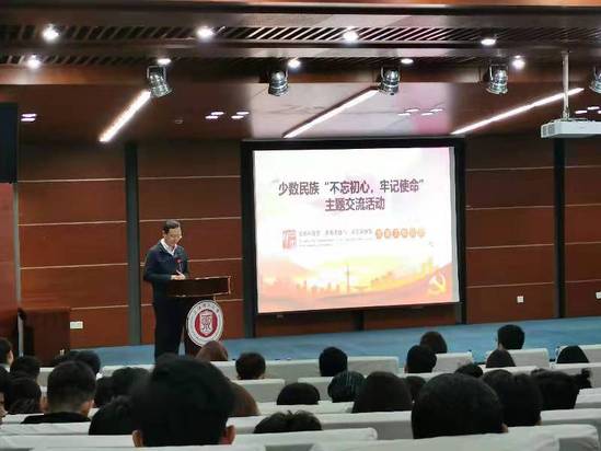 為進(jìn)一步貫徹落實(shí)習(xí)近平總書(shū)記關(guān)于“不忘初心、牢記使命”主題教育的重要精神,10月29日晚在圖文信息中心報(bào)告廳,由學(xué)生工作部(處)主辦、瑪麗亞少數(shù)民族教育工作室承辦,開(kāi)展“不忘初心、牢記使命”主題教育學(xué)習(xí)交流活動(dòng),全校各年級(jí)部分少數(shù)民族本科生、預(yù)科生200余人參加此次活動(dòng)。學(xué)生工作部(處)副部長(zhǎng)、資助管理中心主任謝錫浩,少數(shù)民族學(xué)生工作專(zhuān)職輔導(dǎo)員瑪麗亞·居乃丁,少數(shù)民族預(yù)科班輔導(dǎo)員何曉娜,新疆內(nèi)派教師汪海泓及部分少數(shù)民族學(xué)生工作兼職輔導(dǎo)員老師出席本次活動(dòng)。