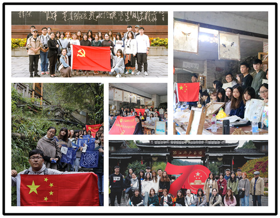 學(xué)院切實(shí)推進(jìn)內(nèi)容形式創(chuàng)新、方法手段創(chuàng)新、體制機(jī)制創(chuàng)新,將紅色元素和紅色基因嵌入專業(yè)學(xué)習(xí),做到主題教育不間斷,取得了豐碩的成果。視覺(jué)傳達(dá)設(shè)計(jì)專業(yè)師生將紅色元素嵌入課外實(shí)踐,2019年10月赴貴州遵義,在實(shí)地體驗(yàn)具有千年歷史的傳統(tǒng)手工藝的同時(shí),實(shí)景感受紅軍長(zhǎng)征的艱苦卓絕。