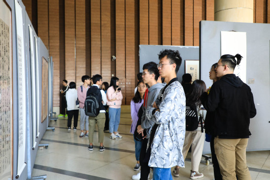 開幕式后,師生移步展區(qū),認真細致地參觀學生書法作品。