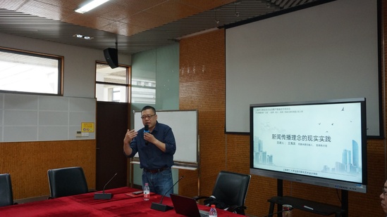在此基礎(chǔ)上,王海濱提出了媒體轉(zhuǎn)型需要解決的兩個(gè)問題。首先是分享,將覆蓋性傳播變?yōu)榱炎冃詡鞑?。其次是安全,即如何對裂變加以管控。他還向同學(xué)們提出“如何判斷傳統(tǒng)媒體轉(zhuǎn)型是否成功?”的問題,并從生產(chǎn)效率和傳播效率兩個(gè)角度為同學(xué)們提供思路,同學(xué)們深受啟發(fā)。