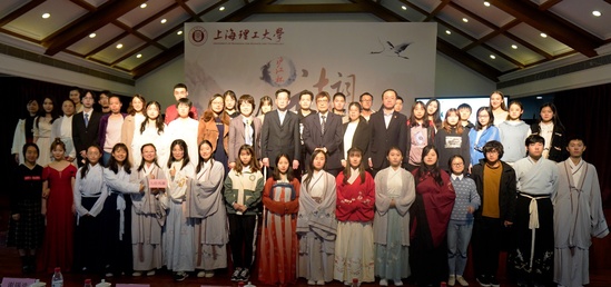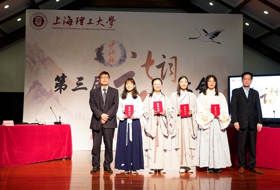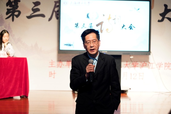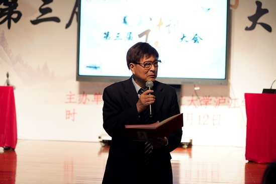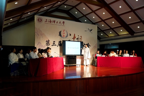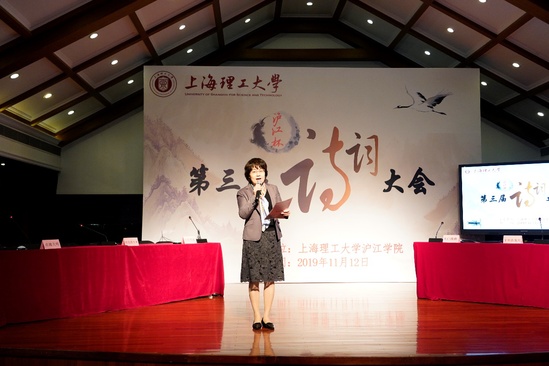 晴空一鶴排云上,便引詩(shī)情到碧霄。作為上海理工大學(xué)的重要校園文化品牌,第三屆“滬江杯”詩(shī)詞大會(huì)決賽于11月12日下午1點(diǎn)半在上海理工大學(xué)音樂(lè)堂舉行。上海理工大學(xué)滬江學(xué)院常務(wù)副院長(zhǎng)、直屬黨支部書記陳紅,宣傳部副部長(zhǎng)盧蕭,學(xué)生處副處長(zhǎng)謝錫浩以及滬江學(xué)院教師出席決賽,語(yǔ)言學(xué)家、復(fù)旦大學(xué)中文系教授、博士生導(dǎo)師殷寄明,上海師范大學(xué)特聘教授、博士生導(dǎo)師、上海文史館館員曹旭作為決賽評(píng)委應(yīng)邀共襄盛舉。正在我校檢查工作的上海語(yǔ)言文字委部分委員到現(xiàn)場(chǎng)觀看了詩(shī)詞大會(huì)。