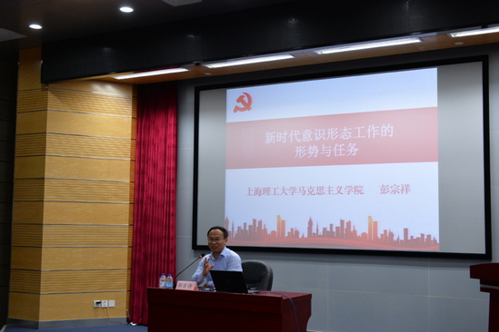 為深入開展“不忘初心、牢記使命”主題教育,11月12日下午,機械工程學院特邀馬克思主義學院黨總支書記彭宗祥副教授為全院教工、部分學生黨員、入黨積極分子作題為“新時代意識形態(tài)工作的形勢與任務”的理論學習專題輔導報告。報告會由學院黨委書記袁媛主持。
