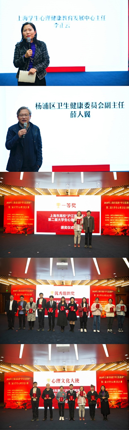 11月20日下午,上海市高?!皽t(yī)教杯”第二屆大學(xué)生心理文化大賽暨上海理工大學(xué)秋季心理文化月閉幕式在圖文信息中心舉行。此次大賽由上海學(xué)生心理健康教育發(fā)展中心主辦,上海理工大學(xué)承辦,楊浦區(qū)創(chuàng)“全國社會心理服務(wù)體系建設(shè)試點”工作辦公室和楊浦區(qū)精神衛(wèi)生中心協(xié)辦。上海理工大學(xué)黨委副書記、副校長盛春,上海學(xué)生心理健康教育發(fā)展中心主任李正云,上海高校心理咨詢協(xié)會會長陳增堂,楊浦區(qū)衛(wèi)生健康委員會副主任薛人翼,華東政法大學(xué)學(xué)生工作部(處)部(處)長王戎,上海中醫(yī)藥大學(xué)傳統(tǒng)保健教研室主任馮金瑞,上海理工大學(xué)學(xué)生工作部(處)副部(處)長周濤受邀擔(dān)任本次大賽的評委。來自復(fù)旦大學(xué)、同濟大學(xué)、上海理工大學(xué)、楊浦區(qū)精神衛(wèi)生中心等12所高校單位的24名選手參加了此次大賽。