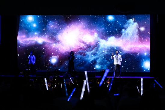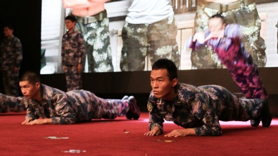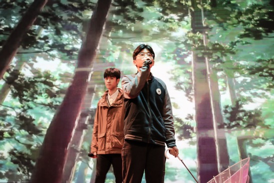 接下來,多聲部無伴奏的歌曲串燒《阿卡貝拉》令人擊節(jié)稱賞;《光影之間》采用別具一格的舞蹈方式,在黑暗中身穿多彩閃耀的服裝,利用酷炫的舞步和富有節(jié)奏感的伴奏俘獲觀眾們的雙眼;相聲《生財有“盜”》則在放松觀眾聽覺視覺的同時感受到最純粹的快樂;《小情歌》結(jié)合多語言、B-BOX、AP和動漫等多種元素,以一種極其放松的方式為晚會增添浪漫的氣息;緊隨其后的《軍旅》由我校退伍大學(xué)生出演,在《有我在》的BGM中,演練了軍體拳和軍事技能,使晚會現(xiàn)場充滿了熱血和激情,將晚會推向高潮。最后,我校藝術(shù)團聲樂部三位同學(xué)帶來歌曲串燒《日落大道》,瞬間點燃了整個大禮堂。
