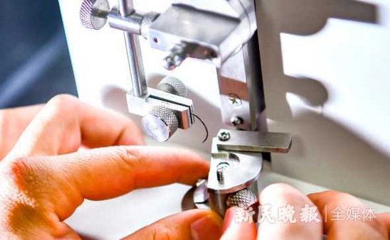 研究人員在對醫(yī)用縫合針進行檢測。孫中欽攝