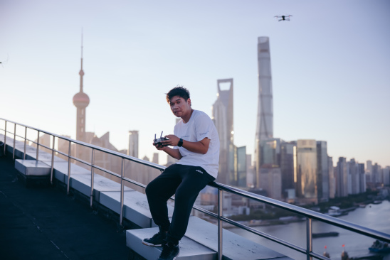 “我大概上輩子是一架飛機,特別喜歡用無人機替我飛上天空俯視整個城市,喜歡城市里的車水馬龍,喜歡入夜后的光影燦爛,每一次成功的拍攝都讓我回味無窮?!睘榱诉M行日出的延時攝影,欒博翔經(jīng)常凌晨三點多起床,一拍就是三四個小時,卻從來不覺得累。美麗的校園和繁華的城市則為他的創(chuàng)作提供了現(xiàn)成的素材庫,從紅墻綠瓦的滬江園,到高樓林立的陸家嘴、串流不息的高架橋……城市生長的力量被他一一記錄在相機里。
