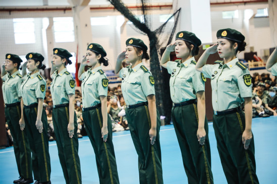教官一聲令下,體育館內(nèi)2021級(jí)新生組成10個(gè)方隊(duì)進(jìn)行分列式展示。嘹亮的口號(hào)、整齊的步伐、颯爽的英姿,各方陣依次正步鏗鏘地通過主席臺(tái),接受領(lǐng)導(dǎo)的檢閱,短短一段路,充分展示了新上理人的堅(jiān)毅品質(zhì)和青春風(fēng)采。校黨委副書記孫躍東宣讀了關(guān)于表彰軍訓(xùn)優(yōu)秀教官、優(yōu)秀工作人員、優(yōu)秀學(xué)員、優(yōu)秀通訊員和優(yōu)秀征文獎(jiǎng)的決定。全體領(lǐng)導(dǎo)為受表彰人員代表頒發(fā)證書。