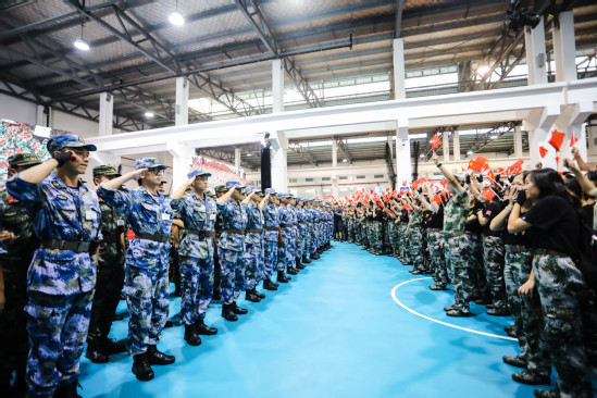 陳子欣作為新生代表發(fā)言,她表示這些天的軍訓(xùn)生活收獲了成就感、榮譽(yù)感,未來的四年里,她將與大家一起努力成為井然有序、理性自律的“上理人”,成為淬煉品德、光彩煥發(fā)的“上理人”,成為勇?lián)姑?、銳意進(jìn)取的“上理人”,沿著先輩的足跡,為學(xué)校的發(fā)展貢獻(xiàn)青春力量。
