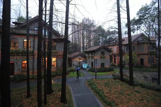 滬江國(guó)際文化園位于上海理工大學(xué)軍工路北校區(qū)的重要位置,沿著主干道湛恩大道走數(shù)分鐘,在參天香樟的掩映中,北側(cè)的大草坪上散落著7幢風(fēng)格迥異的獨(dú)體別墅。